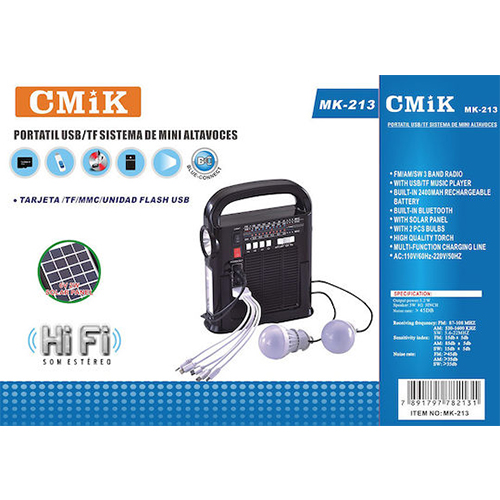 Cmik Επαναφορτιζόμενο Φορητό Ραδιόφωνο με Ηλιακό Πάνελ FM/AM/SW/USB/MP3/Bluetooth MK-628BT