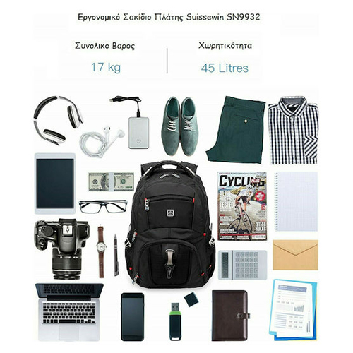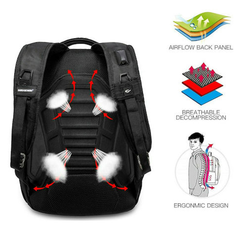 Suissewin SN9902 Ανδρικό Υφασμάτινο Σακίδιο Πλάτης Αδιάβροχο Μαύρο