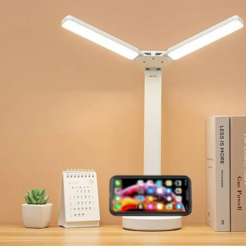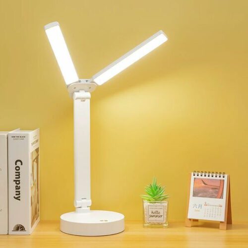 Επαναφορτιζόμενο φωτιστικό γραφείου με ενσωματωμένο LED και αναδιπλούμενο βραχίονα, σε λευκό χρώμα.