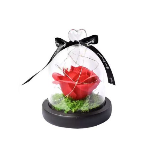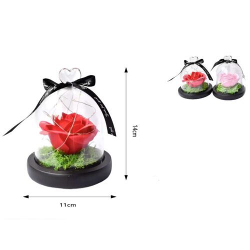 Τεχνητό Τριαντάφυλλο με LED σε Γυάλα 14x11cm σε Κόκκινο Χρώμα 84724
