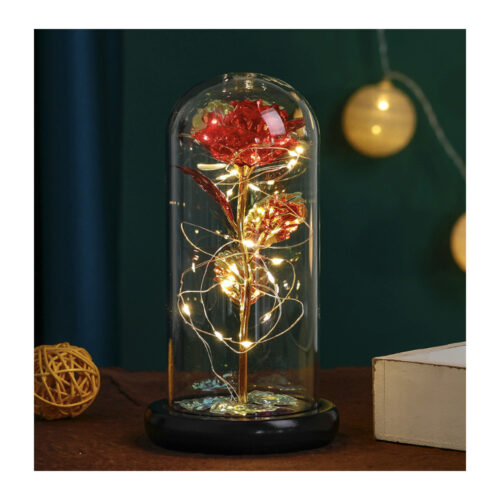 Τεχνητό Τριαντάφυλλο 20x9cm Σε Γυάλα Με Led Σε Κόκκινο Χρώμα