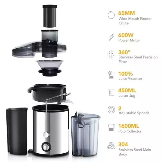 Λειτουργεί σε υψηλές στροφές, και αφού πρώτα τεμαχίσει τα φρούτα ή τα λαχανικά που θα τοποθετήσετε, στη συνέχεια τα περνά μέσα από ένα σουρωτήρι φτιάχνοντας σε σύντομο χρονικό διάστημα χυμό.
