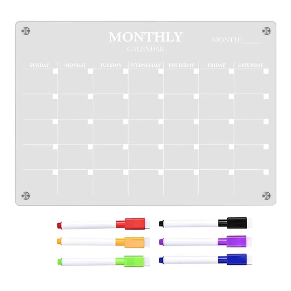 Ακρυλικός Μαγνητικός Πίνακας Μηνιαίο Ημερολόγιο με 6 Μαρκαδόρους SL-0025452