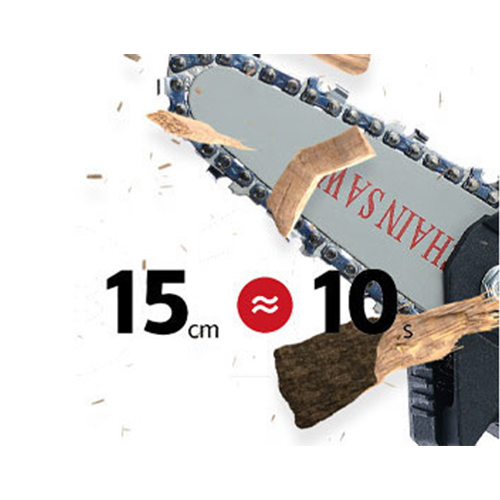 Αλυσοπρίονο μπαταρίας με εργονομικό σχεδιασμό, βολικό για εργασίες με το ένα χέρι και ελαφρύ για να μπορεί να χρησιμοποιηθεί για πολύωρες εργασίες. Διαθέτει διακόπτη για αργή και γρήγορη ρύθμιση για αλλαγή ταχύτητας, παρέχοντας έλεγχο στο κόψιμο για την προστασία των δέντρων. Επιπλέον διαθέτει πλακέτα ελέγχου κυκλώματος που προστατεύει από την υπερφόρτωση.
