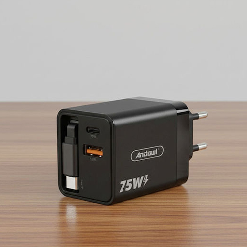 Φορτιστής πρίζας με θύρα USB & Type-C 75W Andowl Q-CD09. Ο Andowl Q-CD09 είναι ένας προηγμένος φορτιστής πρίζας, σχεδιασμένος για υψηλή ισχύ, ταχύτητα και αξιοπιστία στις καθημερινές ανάγκες φόρτισης. Με συνολική ισχύ 75W, προσφέρει γρήγορη φόρτιση σε smartphones, tablets, power banks, ασύρματα ακουστικά, καθώς και σε συσκευές που υποστηρίζουν ισχυρή τροφοδοσία μέσω Type-C.
