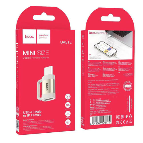 Ο προσαρμογέας Hoco UA31E Mini Type-C Male σε iP Female παρέχει μια απρόσκοπτη σύνδεση μεταξύ συσκευών USB Type-C και συσκευών που είναι εξοπλισμένες με Lightning της Apple.