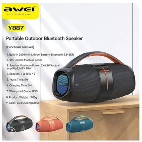 Φορητό ασύρματο ηχείο Bluetooth με χερούλι μεταφοράς Awei Y887 – μαύρο
