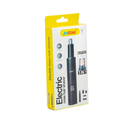 Μηχανή trimmer της εταιρείας Andowl, η οποία είναι κατάλληλη για την περιποίηση της τριχοφυΐας σε περιοχές όπως τα αυτιά, η μύτη, το πρόσωπο, οι φαβορίτες και, και λειτουργεί με επαναφορτιζόμενη μπαταρία.