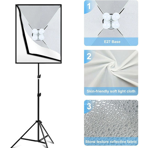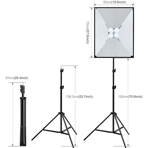 Το σετ περιλαμβάνει μαλακό κουτί 50 x 70 cm από υψηλής ποιότητας ύφασμα με αλουμινόχαρτο μαζί με νάιλον λευκή οθόνη που απαλύνει το σκληρό φως και εξαφανίζει τις σκιές. Επιπλέον, το softbox μπορεί να ξεδιπλωθεί και να διπλωθεί γρήγορα και εύκολα, ενώ η αποθήκευση του δεν είναι επίσης προβληματική.