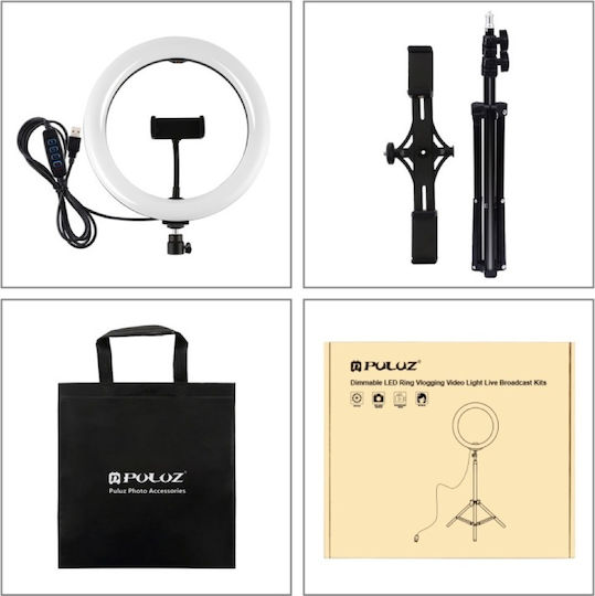 Ring Light PKT3053B 26cm 3200-6500K με Τρίποδο Δαπέδου και Βάση για Κινητό