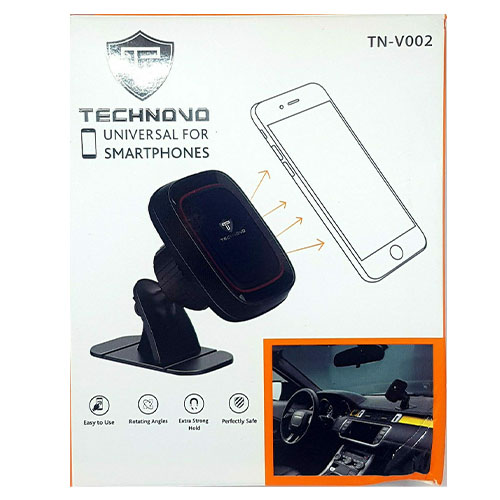Βάση κινητού αυτοκινήτου Technovo. Η βάση στηρίζεται στο ταμπλό του αυτοκινήτου. Η στήριξη της συσκευής στη βάση γίνεται με μαγνήτη τον οποίο μπορείτε να κολλήσετε είτε στη συσκευή σας είτε στη θήκη της. Διαθέτει περιστροφή για πιο εύκολη ρύθμιση της επιθυμητής θέσης της συσκευής.
