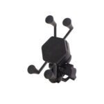 Βάση στήριξης κινητών για μοτοσυκλέτες. Η βάση κλειδώνει με ρυθμιζόμενο αντάπτορα στη μπάρα του τιμονιού της μοτοσυκλέτας. Η στήριξη της συσκευής στη βάση γίνεται με ρυθμιζόμενο βραχίονα. Αυτό σημαίνει ότι η βάση μπορεί να προσαρμοστεί σε διαφορετικά μεγέθη συσκευών, σύμφωνα με το εύρος ανοίγματος του βραχίονα.