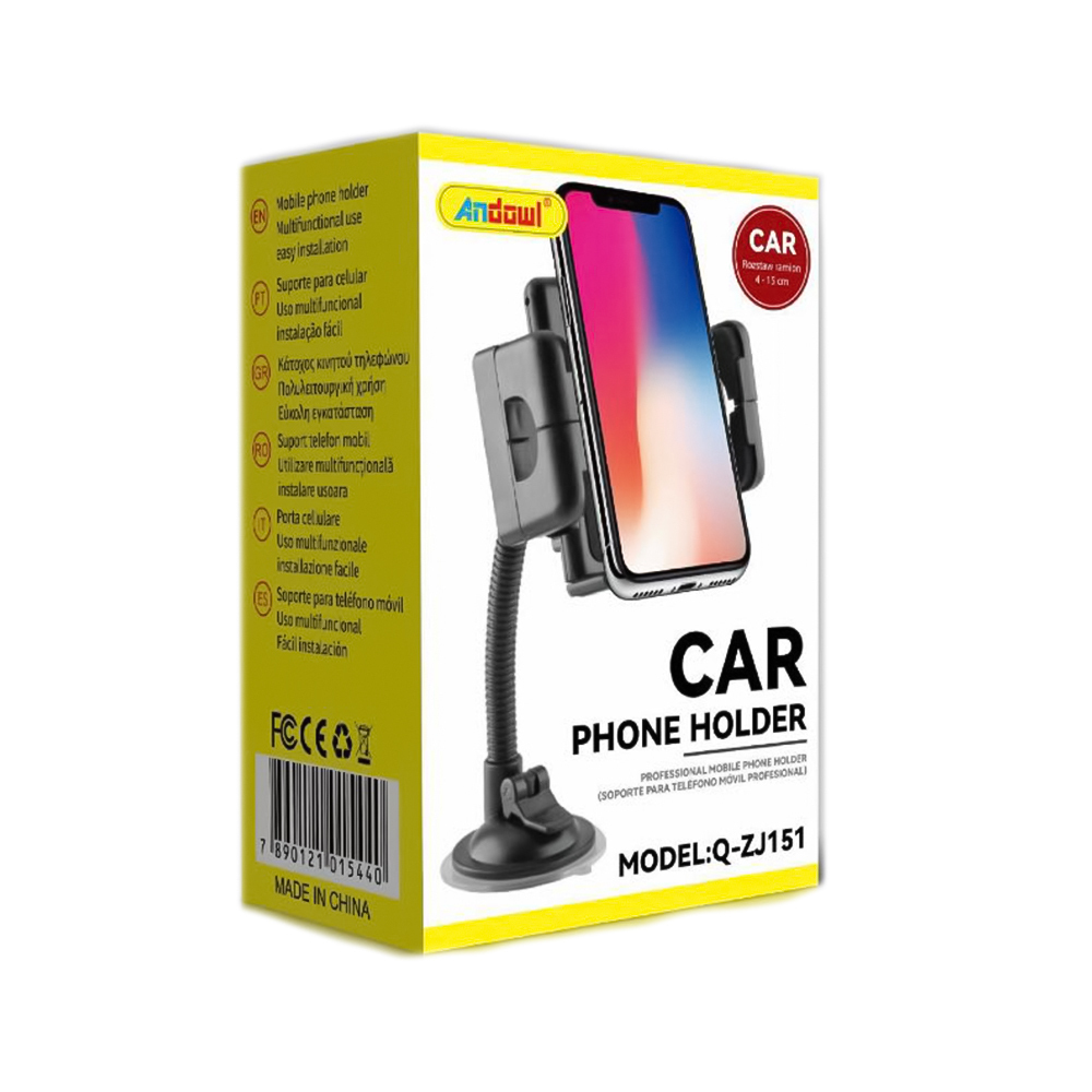 Βάση κινητού αυτοκινήτου της εταιρείας Andowl. Η βάση στηρίζεται με βεντούζα άρα μπορεί να τοποθετηθεί στο ταμπλό ή το παρμπρίζ του αυτοκινήτου. Η στήριξη της συσκεύης στη βάση γίνεται με ρυθμιζόμενα άγκιστρα.