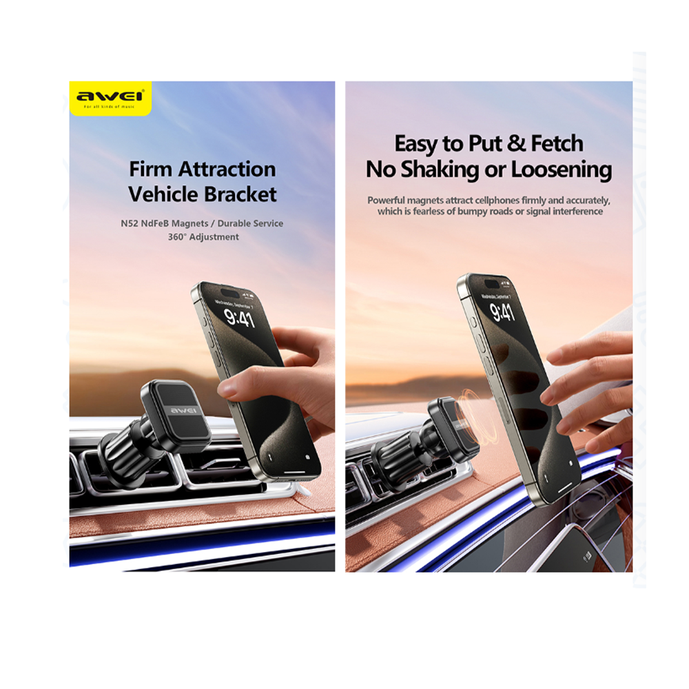 Awei X52 Βάση Κινητού Αυτοκινήτου Με Μαγνήτη Σε Μαύρο Χρώμα