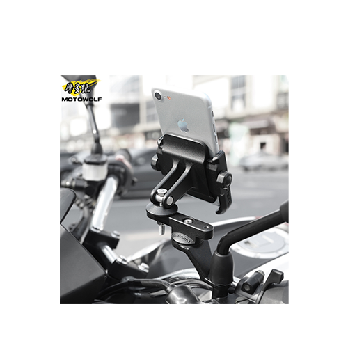 Βάση στήριξης κινητών Κινητού της εταιρείας Motowolf για μοτοσυκλέτες. Η βάση διαθέτει υποδοχή για να τοποθετηθεί στο καθρέπτη της μοτοσυκλέτας. Η στήριξη της συσκευής στη βάση γίνεται με κλίπ. Αυτό σημαίνει ότι η βάση μπορεί να δεχθεί διάφορα μεγέθη συσκευών, σύμφωνα με το εύρος ανοίγματος του κλιπ.