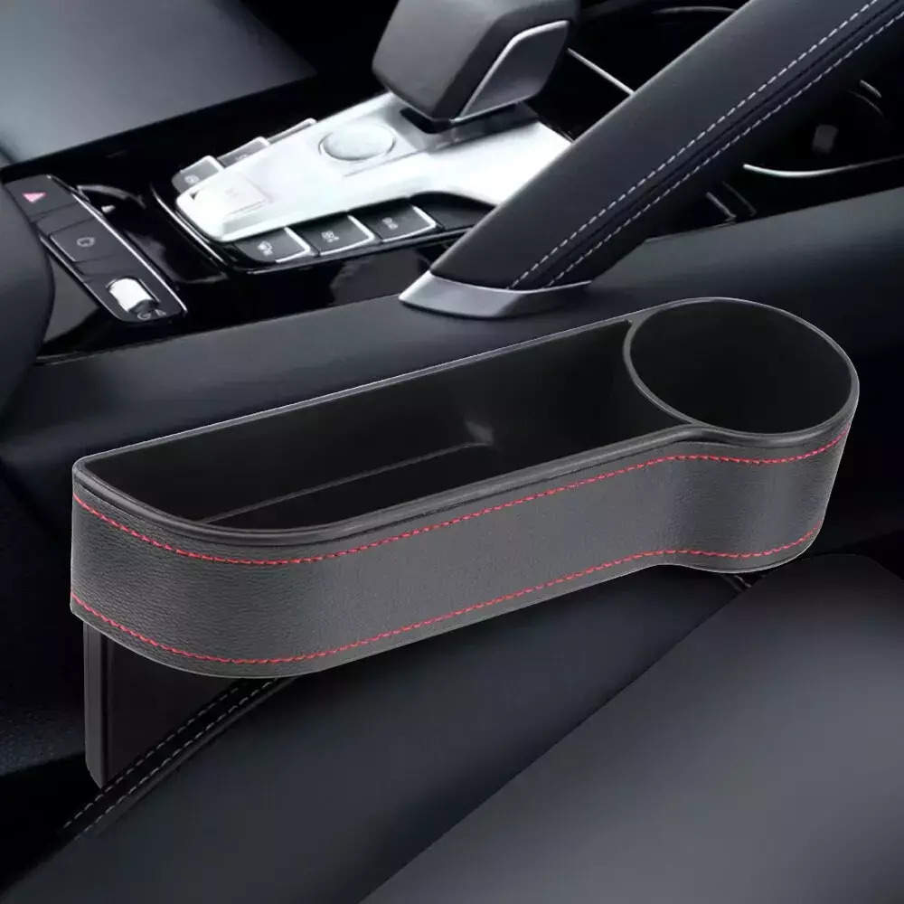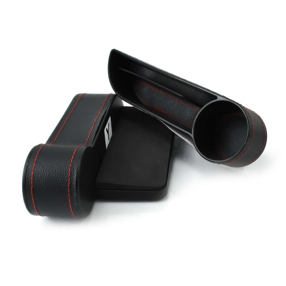 Σετ 2τμχ θήκες κονσόλας με ποτηροθήκη, κομψό σχεδιασμό σε μαύρο χρώμα με κόκκινες ραφές. Τοποθετείται σε αυτοκίνητα ανάμεσα από τα καθίσματα.