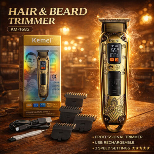 Kemei KM-1627 Επαγγελματική Επαναφορτιζόμενη Κουρευτική Μηχανή Ροζ Χρυσή