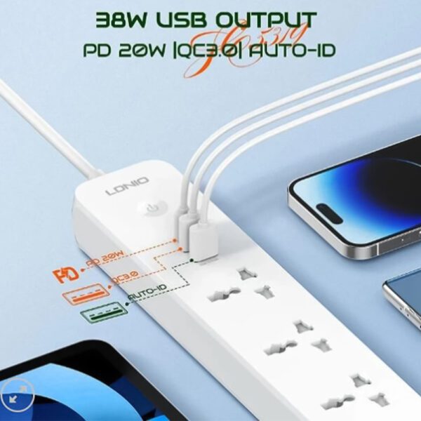 Ldnio SC3631 Πολύπριζο 3 Θέσεων με Διακόπτη, 6 USB και Καλώδιο 1.6m Μαύρο